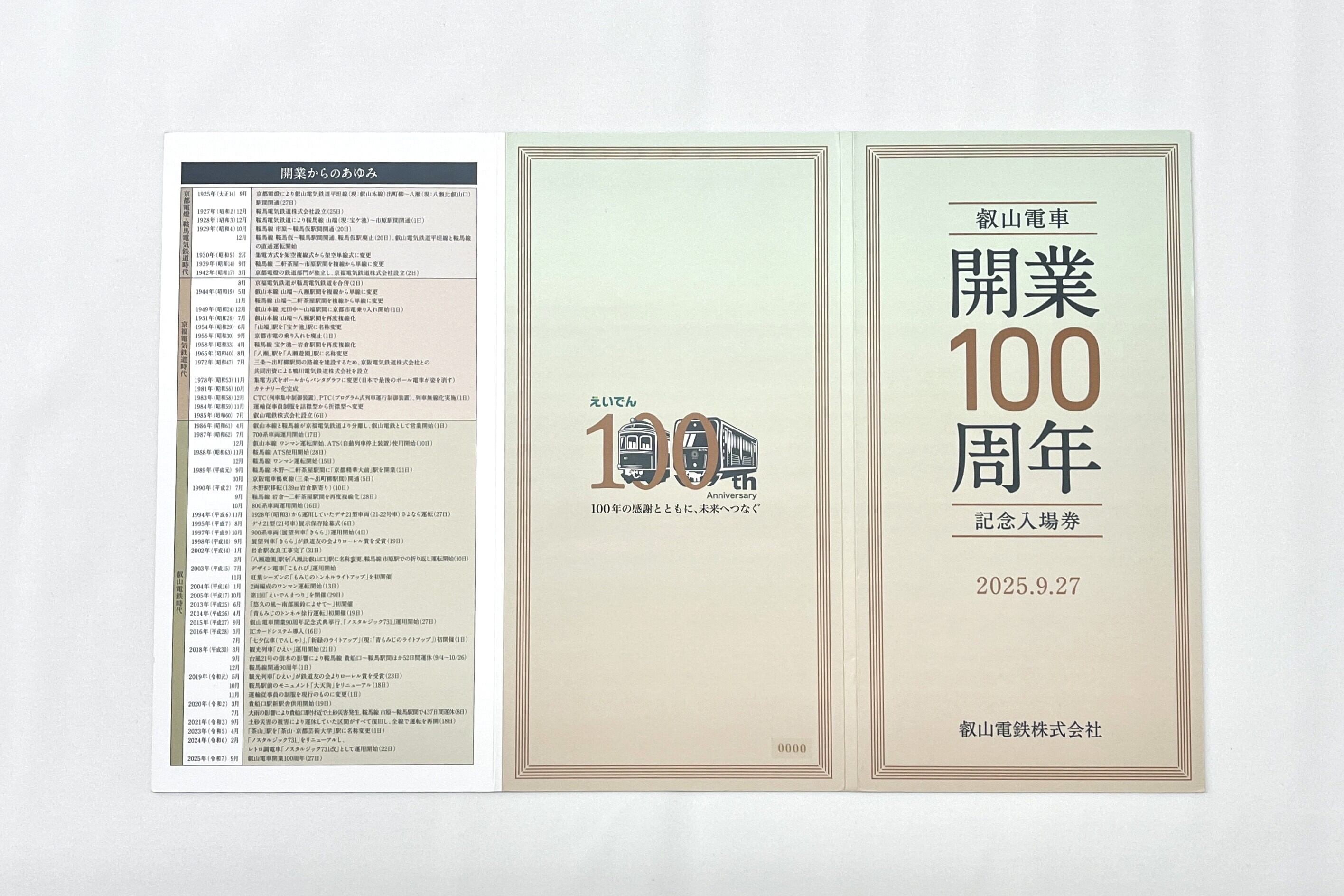 叡山電車開業100周年記念入場券